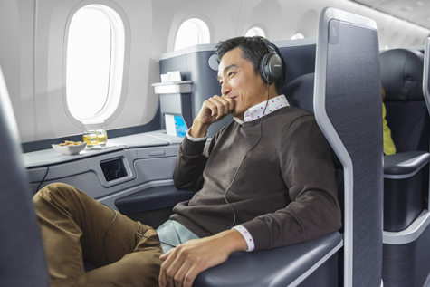 Flagship™ビジネスの座席は、お好みの角度に調節可能なリクライニング、ヘッドレスト、レッグレストを装備。全席通路に直接アクセス可能な設計で気兼ねなく席を立つことができます。また着席時には前列のお客様が見えない設計となっており、まるで半個室ような空間となっています。