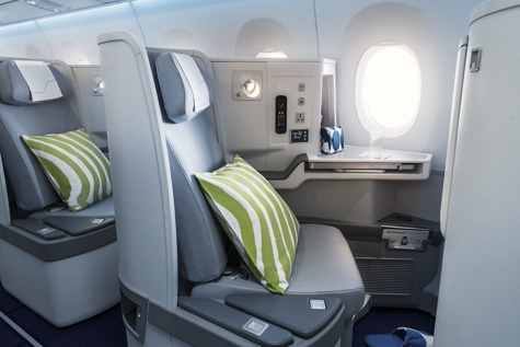 フィンエアーの長距離路線では、ビジネスクラスにフルフラットシートを採用しています。水平なベッドになり、空の上での快適な眠りをお約束します。(写真はA330型機のシート)