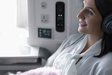 最先端の機内エンターテインメントで、豊富なラインナップのテレビ番組や映画などをお楽しみください。パソコン電源やUSB電源も完備。プライバシーが確保されたビジネスクラスの座席なら、リラックスしてエンターテインメントを満喫できます。
