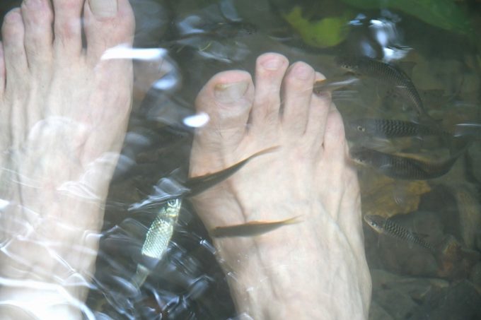 帰り道は、世界最小のリスと言われている“ボルネオピグミーリス”を見ることができました。その後はテンブロン川の支流で、角質を食べてくれる“ドクターフィッシュ”体験。行きに寄ったレインフォレストロッジに戻ってきて、遅い昼食をいただいてからホテルに戻りました。