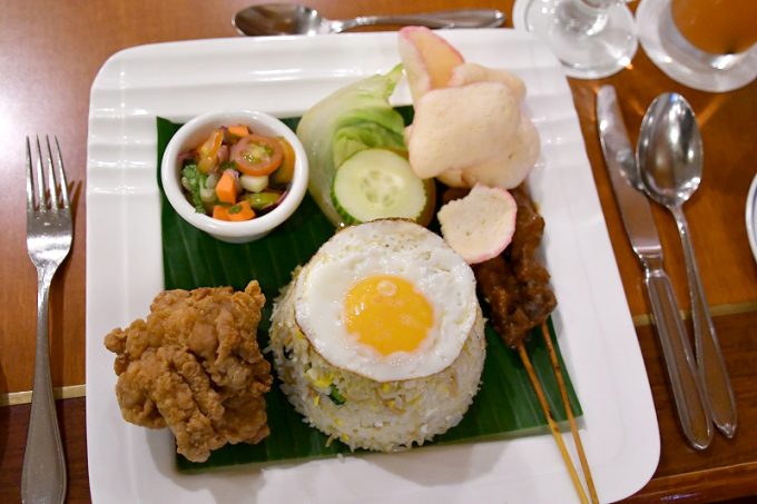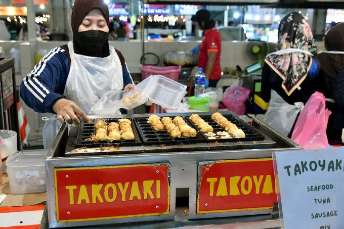 18時からは、ジ・エンパイア・ブルネイにピックアップに来てもらい、「ナイトマーケット+ブルネイ夜景ツアー」に参加しました。「ガドン・ナイトマーケット」は屋内マーケットでしたが、いろいろなお店が入っていました。たこ焼きを食べてみると、タコが入っていませんでしたが結構美味しかったです(笑)。夕食は、「ザ リックン インターナショナル ホテル」内のレストランでマレー料理をいただきました。