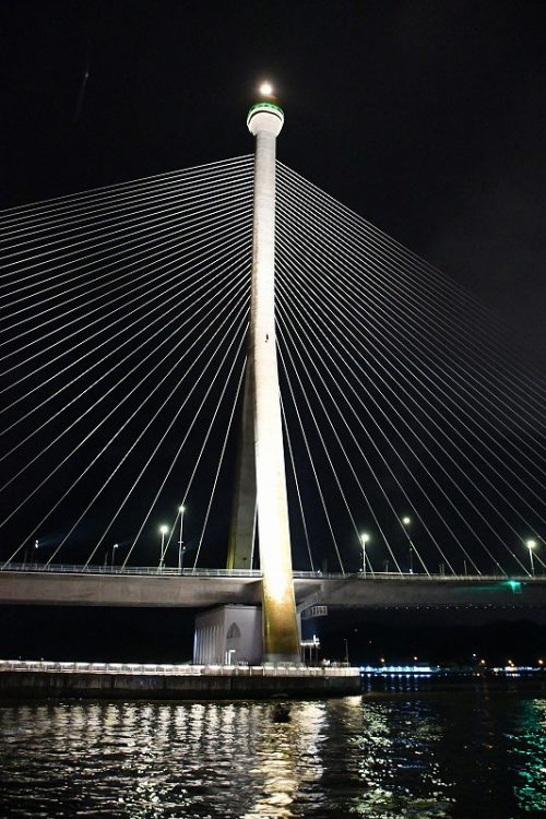 17時半~20時半までは、予約しておいた「ホタル観賞ツアー」に参加しました。まずは「Soto Pabo(ソト・パボ)」というレストランでマレー料理の夕食をいただき、その後ボートでブルネイ川を遡りホタルのいる所へ向かいました。少し雨が降ったのですが何匹かは見れましたのでよかったです。小さいホタルですが光は強く、幻想的な光景でした。ホタルは1年中見られるそうですよ。ボートに乗って戻り、帰り道に「ラジャ・イステリ・ペンギラン・アナック・ハジャ・サレハ橋」の夜景を眺めてホテルに戻ってきました。