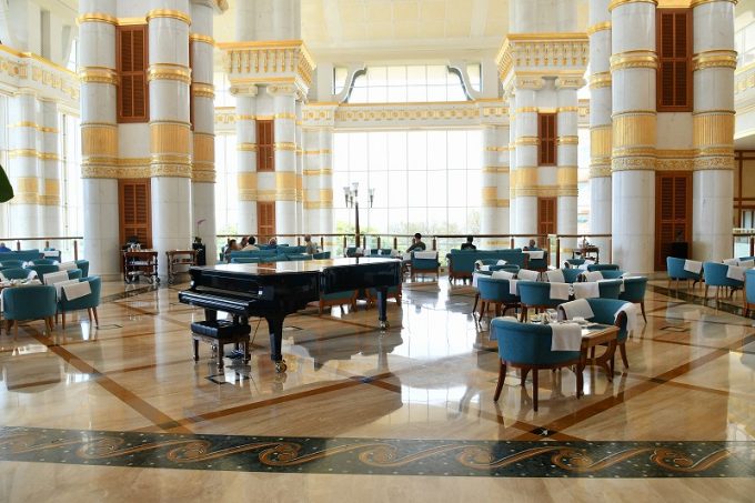 9月9日の最終日。ホテルをチェックアウトし、10時頃にタクシーで7つ星ホテル「ジ・エンパイア・ブルネイ」に向かいました。7つ星ホテルはドバイとブルネイの世界に2つしかありません。宿泊はしていませんが、大理石でできたラグジュアリーな空間や敷地内を散策し、その世界観を満喫しました。