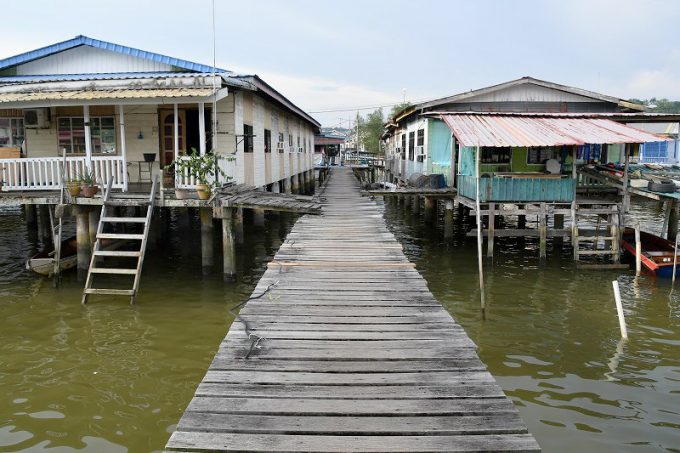 その後、世界最大級の水上集落「カンポン・アイール」へ。歩いて水上集落を見てまわりました。民家ではニッパヤシの葉で巻いたローカルなお菓子“セルルー”を食べました。