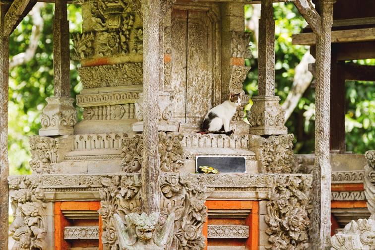 境内には至る所に小さな寺院が点在しています。観光客がいる中でも普通にお供えとお祈りを捧げるバリ人の姿も見ることができます。お祈りは静かに見ましょう。