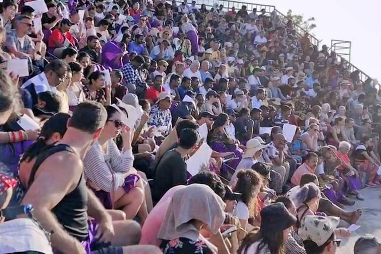 ケチャックダンスが始まるまでの待ち時間は、直射日光が当たるので日傘を持っていくことをオススメします。