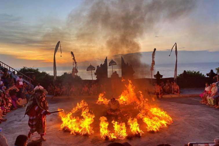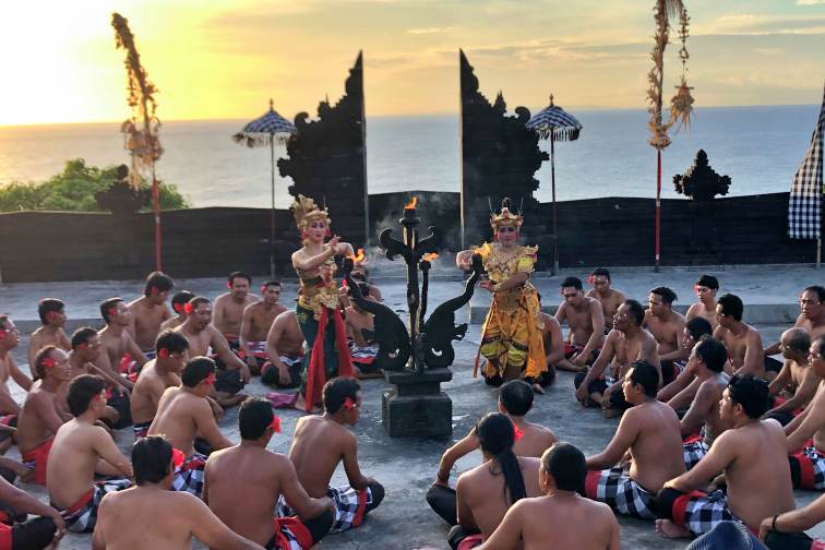 もちろん夕日を眺めるだけでも感動するのですが、当社のツアーでは、そんな美しい夕日を背景に、伝統舞踊ケチャックダンスを鑑賞できます!