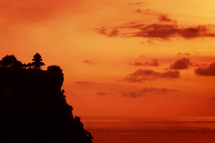 昼間に訪れても絶景を楽しめますが、ウルワツ寺院の魅力はなんといっても息をのむほど美しい夕日を眺められること!オレンジ色の夕日がどこまでも続く海を染めながら沈んでいく・・・その景色を見れば、「あぁ、ここへ来て良かったなぁ」としみじみ思うはずです。
