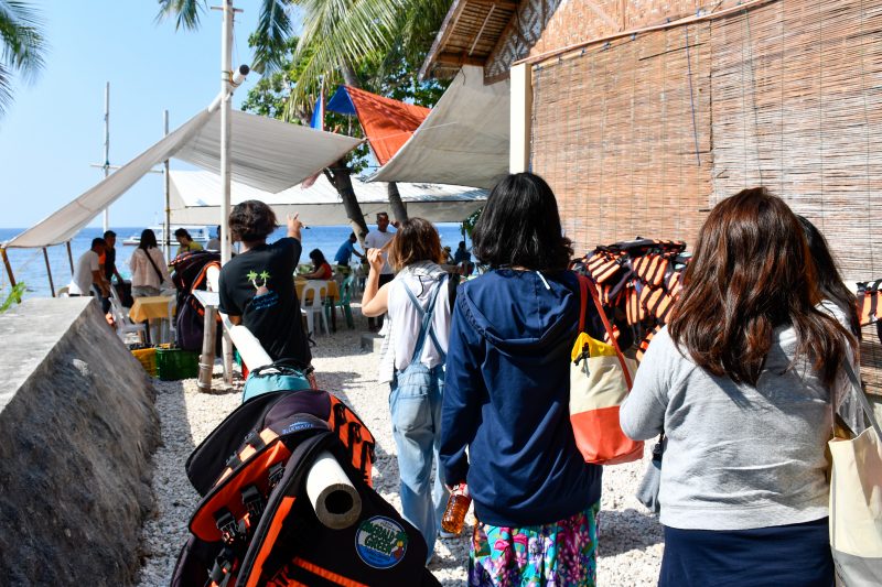 オスロブ到着後は荷物と貴重品を預けて、各自席でツアーの書類にサイン。スタッフからはツアーにおける注意点を説明されます。最後に飲料水の販売(55ペソ≒110円)や水中カメラのレンタルも行っていますので、必要な方はスタッフに声をかけてください。