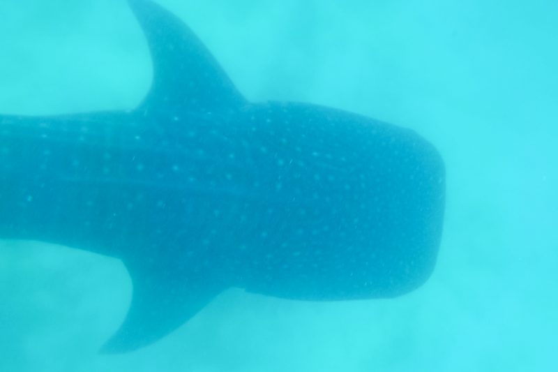 ジンベイザメは日によってたくさん集まる日とそうでない日があり、運が良い日は最大で10匹以上も会えるそうです!事前にスタッフからは「ジンベイザメが泳ぐルートを塞がないように」、「ジンベイザメに触れてはならない」と説明があったものの、ジンベイザメ自身から接近してくる場面も多々あります。