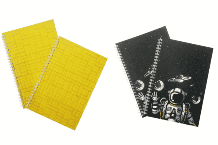 (左)レゴブロックの柄、(右)宇宙飛行士柄のユニークなノート