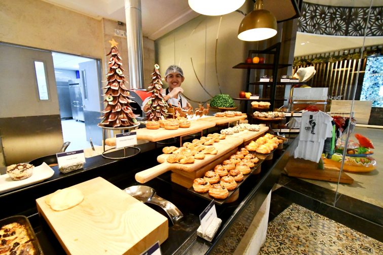 12月初旬にホテルを訪れたこともあり、カフェ「デリ(Deli)」の店内はクリスマス一色!シュトーレンや、ジンジャークッキーなどのシーズン限定のお菓子も多数あり、思わず写真におさめたくなるかわいらしいデコレーションでした。店内ではジェラート、タルト、ケーキなどなど、小腹満たしにちょうど良いあっさりとしたものからこってりスイーツまで、食後の気分で選べます。