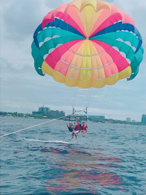 帰国日、お昼にはホテルから空港へ向かわないと行けなかったので、午前中に「パラセーリング」をしました。1人80ドルが正規料金だったのですが、少し交渉してみたら3人で140ドルまで値下げしてくれました。ホテルのサービスでも交渉してみるとうまくいくかもしれませんので、ぜひ試してみてください。