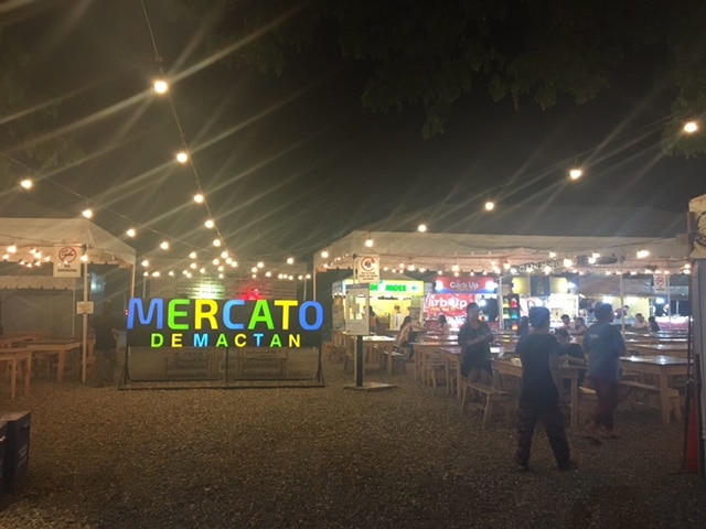 旅行の計画ではまずMercato de Mactanという屋台村に行ってみよう!と決めており、ホテルの方にタクシーをお願いしたところ、徒歩で行けるとのことだったので道順を教えてもらい歩いていきました。まだ外も明るくよかったです。屋台は予想よりこぢんまりしていましたが、ちょうどいい大きさでしたね。ガーリックシュリンプやレチョン、チップにチーズをつけたものや現地のビール・・・量が多くてお腹いっぱい食べました。