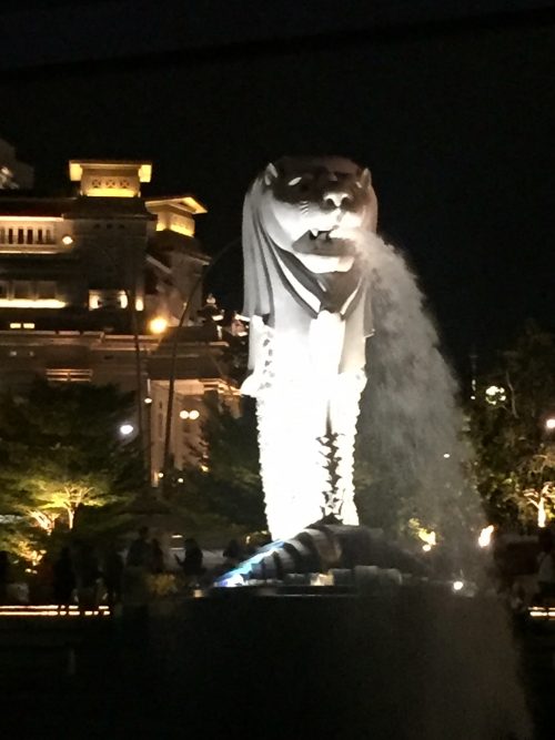 リバークルーズから見る、夜のマリーナベイサンズとマーライオンは、