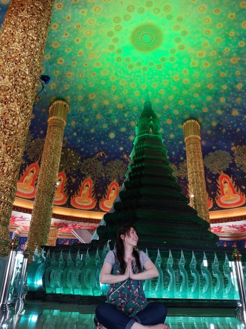 3日目はインスタ映えで有名なワットパクナムへ。ワットパクナムはバンコクにある寺院で、天井に吸い込まれるような宇宙画が描かれていることで有名。まさにインスタ映えスポットで、どこを撮っても写真が綺麗に撮れました。それから最後の買い物タイム。靴を買ったり、ドラッグストアで有名なしみ取りクリームを買ったり、石鹸やシャンプーを買ったり。それと日本の下着メーカー「Triumph」の工場がタイにあるらしく、Triumphの下着がめちゃくちゃ安く売られていました。念願のゾウの背中にも乗れたし、マーケットやワットパトナムにも行けたし、大満足の旅ができました!