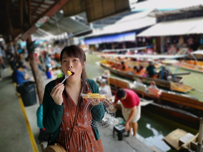 2日目は念願のゾウさんシャワー&水上マーケット!「ダムヌンサドゥアック」水上マーケットでは小さな舟が露店になっていて、川の上で舟から売買している様子がとても面白かったです。日本にはない光景でした!アイスを食べながら舟に乗ってもOKなので気軽に楽しめますよ!