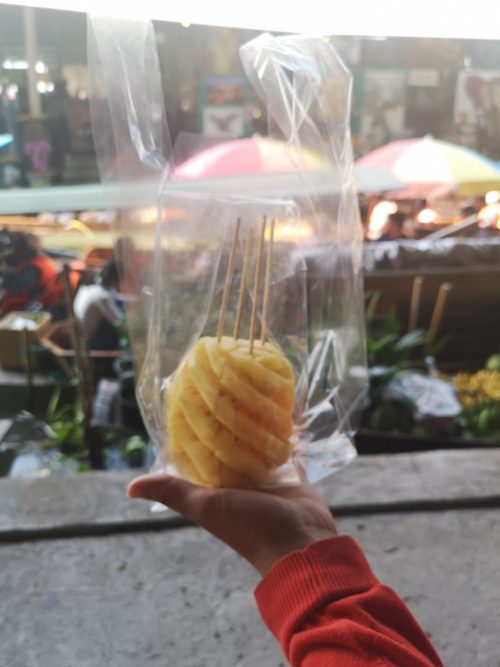 チャトチャックマーケットを後にするとマッサージへ向かいました。その後に晩ご飯を食べる予定でしたが、マッサージで遅くなってしまったので行きたかったお店がまさかの閉店。近くのコンビニで友人は現地の激辛カップラーメン、私は辛いものが苦手なのでスーパーで買ったフルーツを晩ご飯代わりにしました。