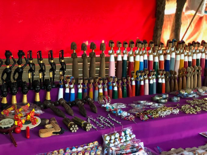 昼食の後は、⾸⻑族の村へ移動しました。3時間くらいかかったでしょうか、到着したのは16時頃。⾸⻑族の歴史について話を聞いて学んだり、家々を廻り生活の様子を見せてもらいました。家の前では、衣装、膝掛け、工芸品などが販売されています。辛い歴史の話も聞いているため、よかったら購入してあげるとよいと思います。