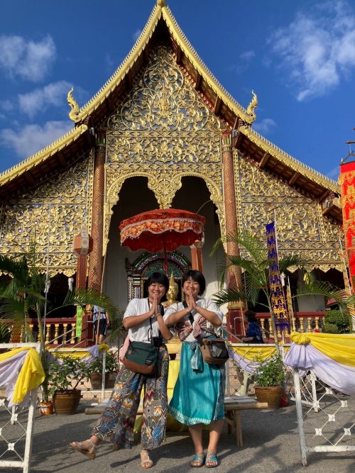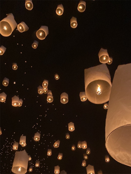 学生のうちに必ず訪れたいと思っていた、コムローイ祭り。高校時代、双子の姉と一緒にテレビ番組を見てから、ランタンが夜空を埋め尽くす、その美しさに心を奪われ、長年憧れていた場所でした。大学卒業が近づく今年、ついに姉妹でその夢を実現!コロナ後、本格的な解禁となる今年のコムローイ祭りには、多くのツアーがありましたが、御社を選んだ決め手は、移動から全てのガイドをしてくれるという点です。空港から宿までの移動だけでなく、未知の場所での案内も含まれていることが大変心強かったです。また、御社のツアーには、コムローイ祭り以外にも多彩なプランが含まれている点も魅力的でした。最終日には自由行動もあり、自分たちのペースで行動できるという点も希望にぴったりでした!おかげさまで、朝から晩まで、チェンマイの魅力を余すことなく楽しみ、眠る時間がもったいないと感じるほど楽しく過ごすことができました。