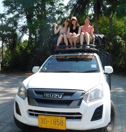 サムイ島には朝の到着。空港まで迎えに来てもらってホテルへ移動しました。着いたのは8時頃と早かったのですが、ホテル側の配慮でアーリーチェックインができました。早速その日の午後から、プライベートジャングルサファリのツアーへ。プライベートジャングルサファリは、サムイ島を4WDで駆け巡るアクティブなツアー。ジープの屋根に乗って山道を走る迫力満天のアクティビティです!4WDに乗るだけでなく、象乗りタイムやモンキーショーがあったりジップラインで遊べたり、思う存分自然を楽しめます。