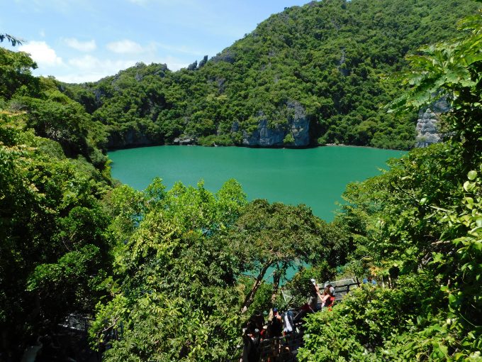 知り合いのご夫婦は大型船でアーントーン国立公園に行くツアーへ行きました。私も行ったことがあるのですが、このツアーもかなりオススメです。カヤッキングして、エメラルドレイクを見て、船でランチをします。展望台から海を眺めたり、鍾乳洞に行ったりとボリューム満載!
