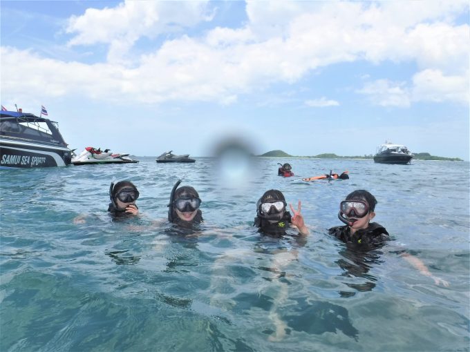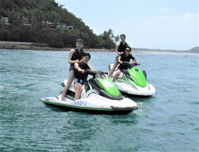 ジェットスキーは日本では船舶免許がいるのですが、サムイ島は免許なしでOK!穴場ですね!ジェットスキーで走るだけでなく、バイクを止めてシュノーケリングをしたり、島に立ち寄って休憩タイムもあるので大満足です。