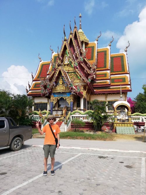 知り合いのご夫婦は、タクシーをチャーターして1日島観光へ行かれました。サムイ島は海も綺麗ですが、煌びやかなお寺もたくさんあるんです。日本の渋いお寺とは違うところも面白いですね。