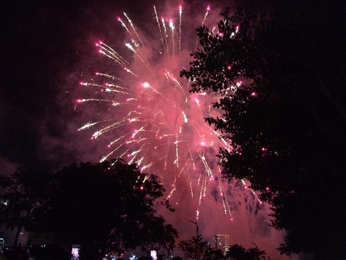 アジアで一番の花火大会に遭遇 レストランで優雅に観賞