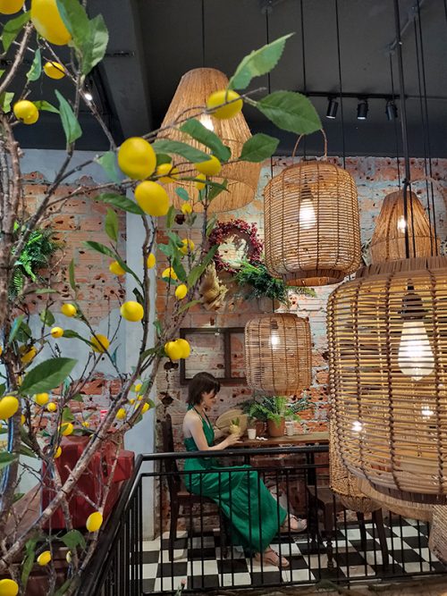 お買い物後は、ホテルまで歩いて帰ることに。橋を渡ったところで、いったんカフェに入って休憩。すごく可愛くて写真映えするカフェでした。注文したパイナップルのスムージーも美味しかったです、スムージ系は確実に冷たいので助かりますね、とにかく暑かったので。