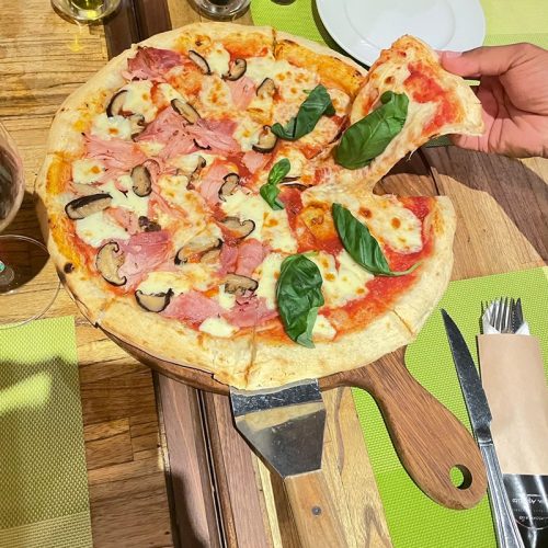 その後はいったんホテルに戻って、荷物を置いたり着替えたりしてから「ドラゴンブリッジ(ロン橋)」の方へ移動しました。夕食は、橋の近くにある「リモンチェッロ」というイタリアンのお店でピザなどをいただきました、美味しかったです!