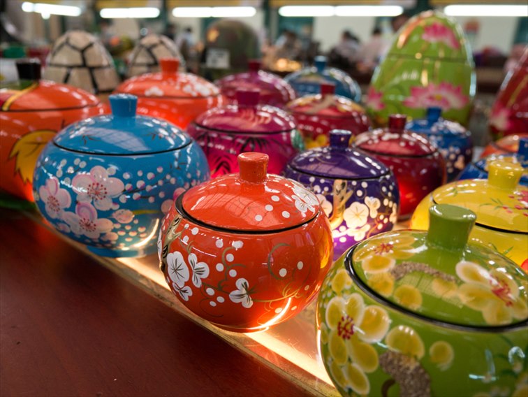 バーチウ市場の1階には鍋やザルなどのキッチン雑貨やちょっとした食器などを扱うお店も多く軒を連ねています。扱いやすいメラミン食器やベトナム伝統の素朴なソンベ焼きの食器なども販売されているので、料理好きの方はぜひ訪れてみてください♪