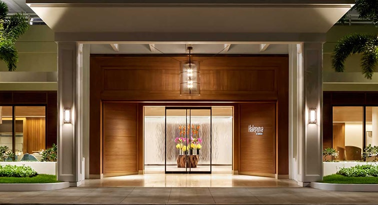 名門ホテル「ハレクラニ」の姉妹ホテル「ハレプナ ワイキキ(Halepuna Waikiki)」。ハレプナの名称由来は、ハワイ語で「館」を意味する“ハレ”と「泉」を意味する“プナ”を合わせたもの。
