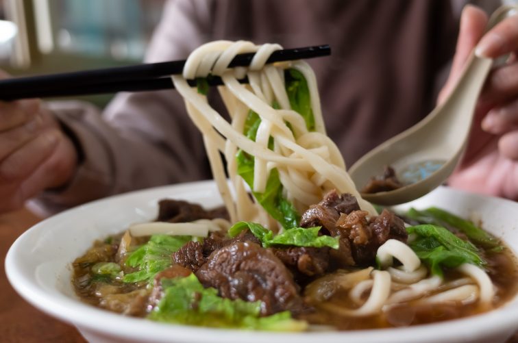 台湾のB級グルメの人気メニュー「牛肉麵」の屋台。