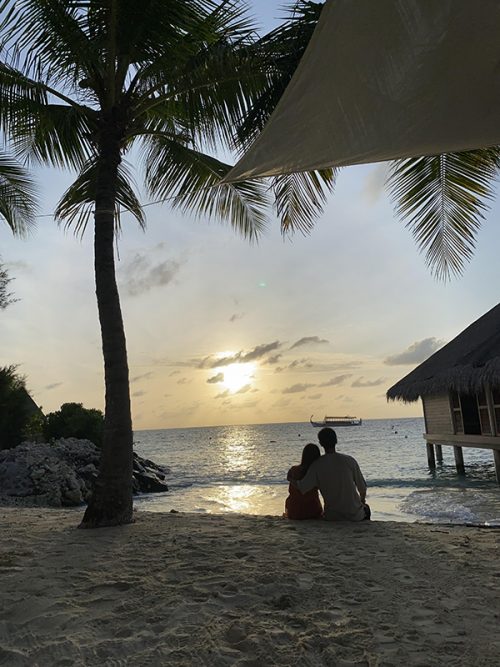 後日、夕食会場で食事をしていたら、私たちのようにハネムーンの方がビーチでのディナーをしているのが見えましたが、途中で雨が降ってきていました。するとスタッフが傘をさしてあげていました。スタッフのホスピタリティは本当に素晴らしかったです。私たちがビーチディナーの際も、日本語で美味しい?と聞いてくれたり、フレンドリーなので飲み物なども頼みやすく、とにかく居心地がよかったです。