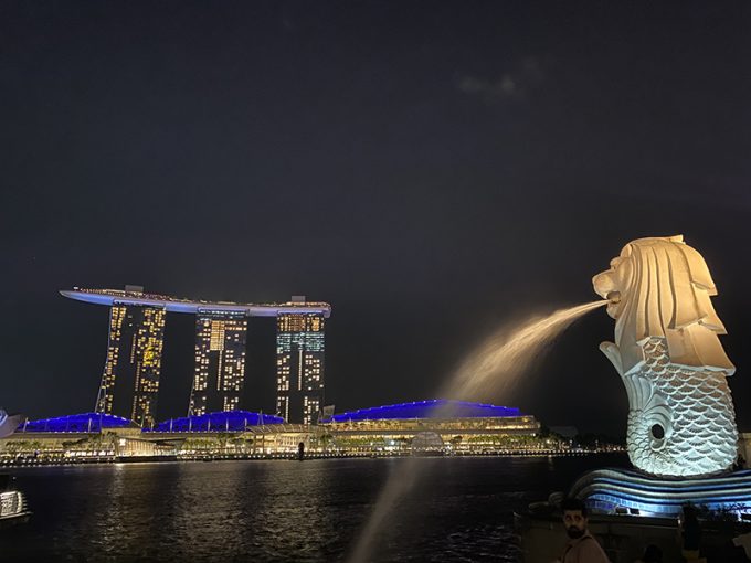 マーライオンとマリーナベイ・サンズ