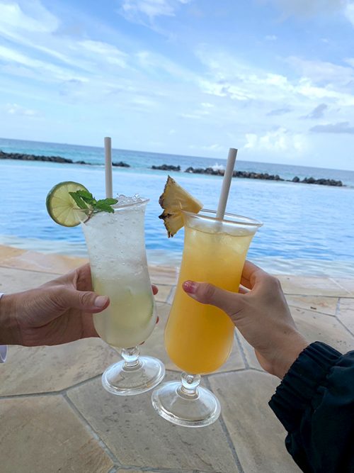 プールサイドでドリンク