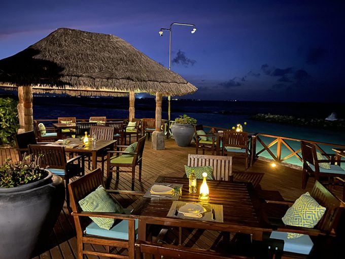 なお、オールインクルーシブプランにカヌー体験が含まれていたのですが、先延ばしにしていてこの日の午後に行ったら、カヌーは午前中のみでしたので結局できませんでした。また、この日は天気も安定せず、スコールみたいなのが降ったり止んだりを繰り返していましたので、ヴィラのお部屋でゆっくり過ごしました。夕食は、種類が多い方のレストランでいただきました。好きなものをいただいて、モルディブで最後の夜を締めくくりました。