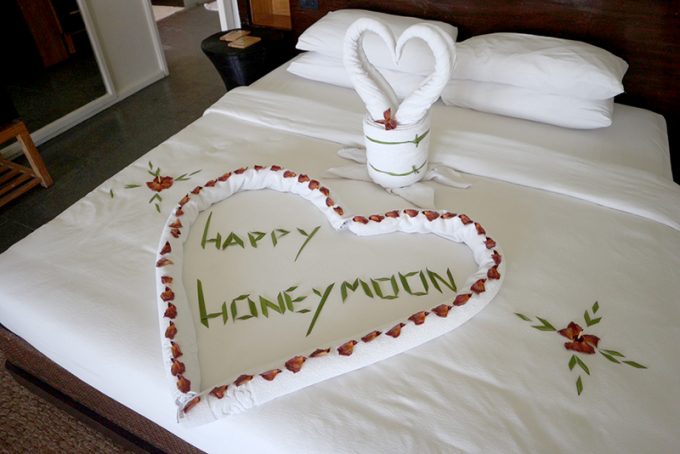 ハネムーンのベッドメイキング