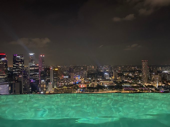その後はホテルに戻って、もう一度インフィニティプールへ。夜景を眺めたり、写真を撮ったりして、ナイトプールを満喫しました。