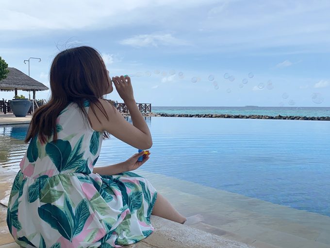 8月8日、ヴィラ滞在も数日経ちましたので、同じように朝食を食べて、シュノーケリングをしたり、プールに行ったり、プールサイドで持って行ったシャボン玉をしたり、ゆったりと過ごしました。