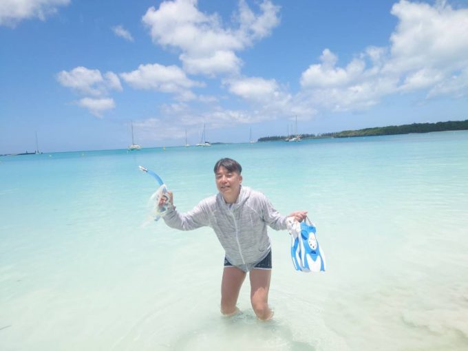 食事を楽しんでは、また海へと戻るという流れを繰り返して、海の美しさを堪能しました。このように過ごしながら、翌日には、ニューカレドニアの旅行雑誌の表紙にもなっている「ピッシンヌ・ナチュレル」という美しいビーチも訪れました。ホテルから車で約20分の距離にあるビーチで、カヌメラ湾と同じくらい美しい景色が見られます。こちらも息をのむような美しさで、とても印象的でした。