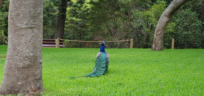 次に、「動植物森林公園」に行ってみました。そこら中に孔雀がいて、鳴き声が盛大に響き渡るなど、自然を存分に感じることができました。アンスバタに戻ってきて、出発までまだ数時間あったので最後の海岸沿いの散歩。前日とは違うハンバーガーショップを見つけたので、そこで夕焼けを見ながら夕食を楽しみました。ホテルに戻るとジャズの演奏があり、21時の集合までのんびりとした時間を過ごして、無事に日本への帰国の途につきました。