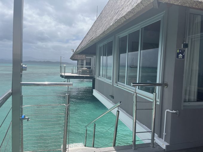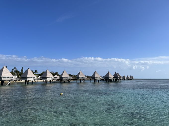 私たちが宿泊したのは、ニューカレドニアで唯一水上コテージがある5つ星ホテル「ダブルツリー・バイ・ヒルトン・ヌメア・イロット・メートル・リゾート」。3泊して存分に優雅な時間を楽しみました。事前にYouTubeでホテルの様子を見ていたのですが、念願の水上コテージに大興奮!ベランダから見える景色が最高でした!