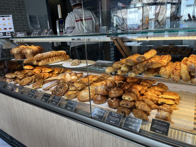 ホテルの近くにある「ラトリエ グルマン」では、おやつ用にエクレアと翌日の夜用にフランスパンを購入しました。