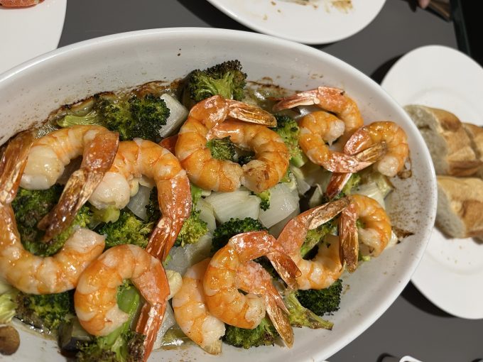 夜は、前日にラトリエ グルマンで購入したフランスパンと、スーパーで購入した材料でステーキとアヒージョを作りました。ビールとともにお部屋でゆっくりと夕食を楽しめました!