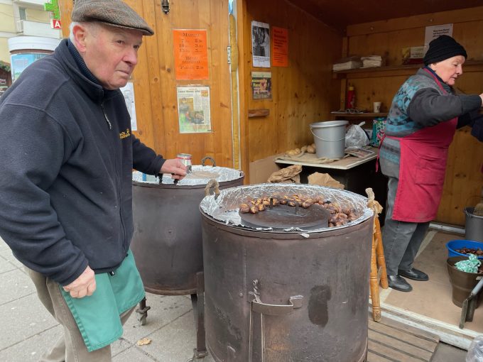ウィーンは今回で4回目。音楽が好きなので何度か訪れている好きな街です。街並みも綺麗で、やわらかい雰囲気の街です。市電に乗りたくて乗ってみましたが、乗り換えてリンク一周するだけで楽しい!ケルントナー通りから横道にそれて歩いていたら「バイオリン工房(弦楽器の工房)」がありました。職人さんがバイオリンを調整してるのが目に入り、しばらく見入ってしまいました。バイオリンやチェロの音色が聴こえてきそうな工房でした。そして、ウィーンの街を歩いていると、焼き栗の屋台があちこちにあります。きっと冬限定なんでしょうね。