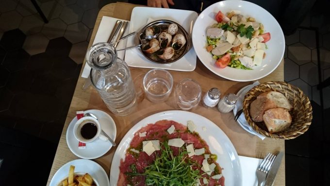 その後、「ラデュレ」へ行きマカロンを購入。美術館先で素敵なレストランを見つけランチ。サラダにチーズにお肉にエスカルゴ!これぞフランスといったお料理を堪能しました。さすが本場です、本当にどれも感動の美味しさでした。