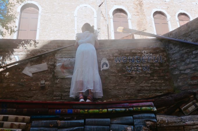 午後、ベネチア本島に戻り「Al Conte Pescaor」にてランチ。旦那がオマールエビのパスタを注文したのですが、今回の旅行で1番美味しかった!と絶賛していました。ベネチアは海の幸が本島に美味しいです。その後ベネチアの有名な本屋さん「Libreria Acqua Alta(アクア・アルタ書店)」へ。細い路地の突き当りにたたずむ個性的な本屋さんで「世界で最も美しい書店」のひとつと言われているのだとか。店内には中庭があってフォトスポットになっており、そこで写真撮影!お土産に絵本も購入しました。