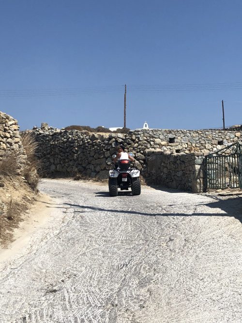 去年スペインへ行く前に主人が国際免許を取得しており、まだ有効期間が残っていました。おかげで今年はミコノス島で主人がレンタルバギーを運転し、パーティービーチから静かな穴場っぽいビーチまで、様々なタイプのビーチを訪れることができました!レンタルバギーは3日間レンタルしたので1日2~3つペースでビーチ巡りができました。免許の関係でバイクはレンタルできず、レンタカーかバギーどちらかだったんです。レンタカーですと値段が高い上に、駐車するところにも困ると思い、バギーで移動することに。ミコノス島は舗装されていない道路も多いので馬力のないバギーだと心配していましたが、結果何もトラブルなくスムーズに周遊することができました!バギーならバイクに比べて安定していますし、レンタカーよりも断然小回りもきくのでおすすめですよ。